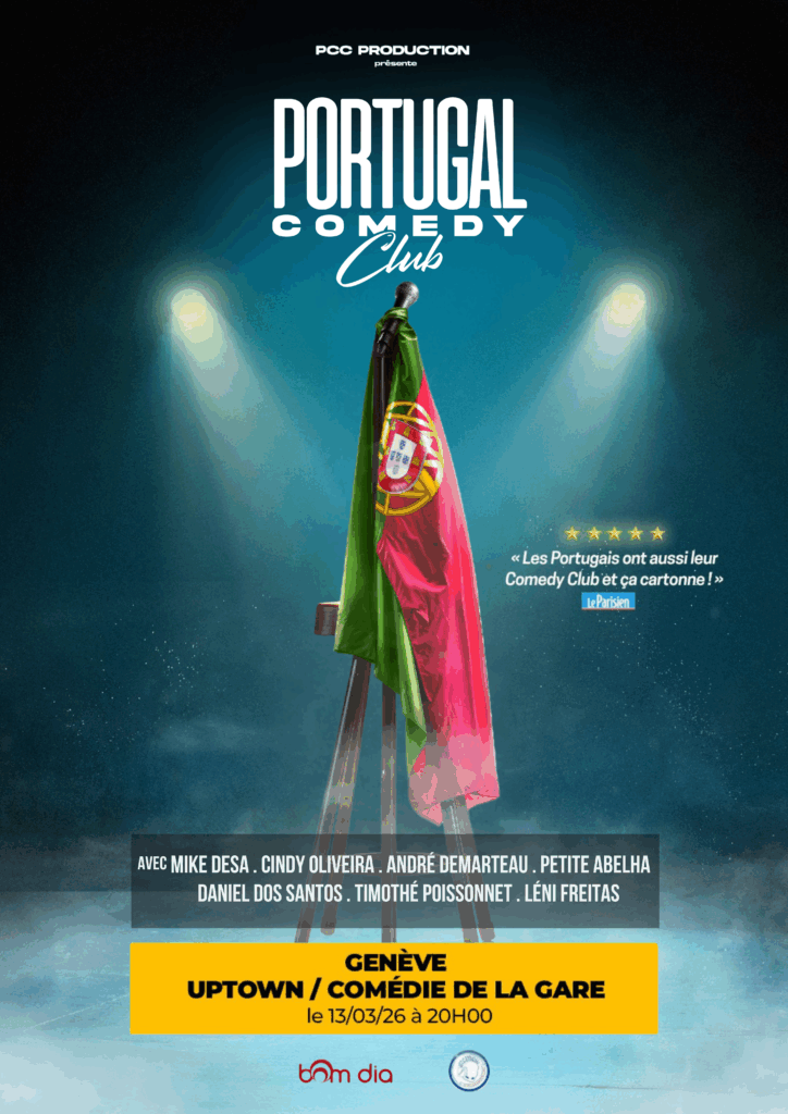 Préparez-vous à une déferlante d’énergie, d’humour, et d’amour du Portugal (même si on reste en Suisse) avec une équipe d’humoristes survoltés. Le Portugal Comedy Club, c’est du stand-up 100 % francophone, avec des racines bien lusophones et des blagues qui par-lent à tout le monde !